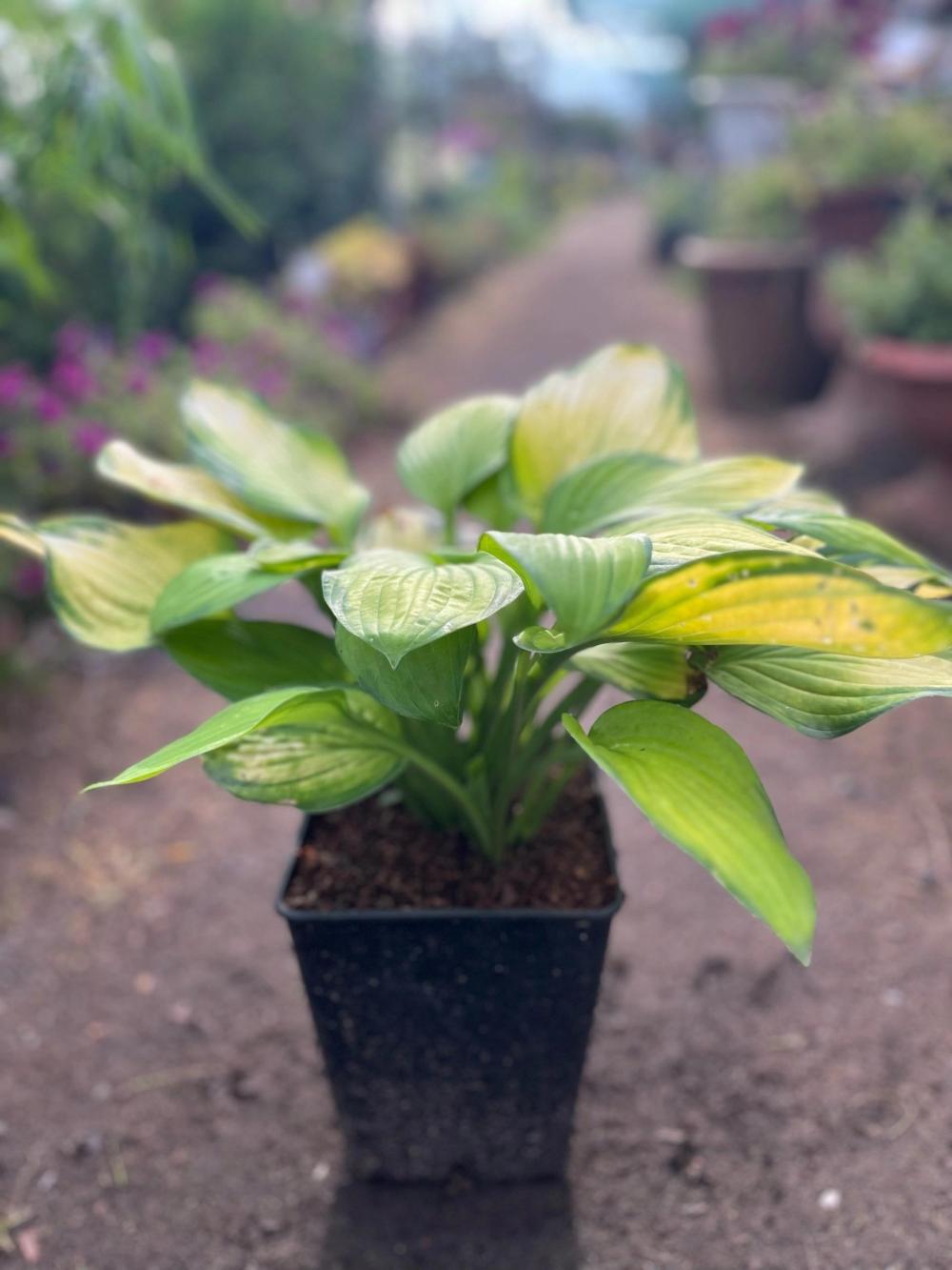 Хоста 'Gold Standard' — крупный, быстрорастущий сорт с эффектными желто-зелеными листьями, меняющими окраску в течение сезона: весной они светло-зеленые с темно-зеленой каймой, а летом центр становится золотисто-желтым, а кайма — изумрудной, но при ярком солнце желтый цвет может переходить в кремовый или почти белый; куст достигает 60-75 см в высоту и до 120 см в ширину, цветет лавандовыми цветами, устойчив к морозам и болезням, идеален для полутени.