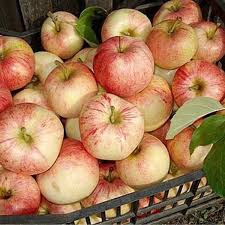 Плоды: Среднего размера (80-120 г), плоскоокруглые, желтые с красными полосами, не осыпаются.