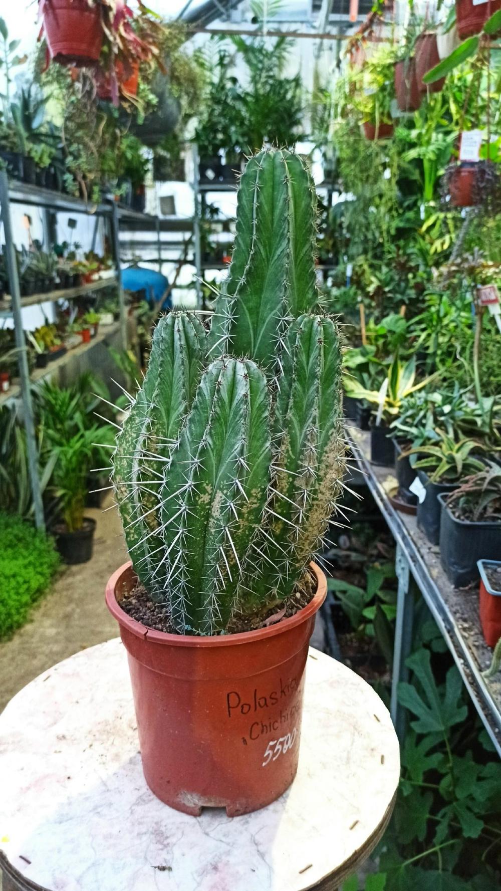 Polaskia chichipe (Полаския Чичипе) — древовидный кактус, высота которого в дикой природе достигает пяти метров. Имеет короткий толстый ствол и ветвистую крону. Боковые побеги около десяти сантиметров толщиной. Ребра в количестве девяти штук. Радиальные колючки в количестве от шести до восьми, сероватого окраса. Центральная колючка одна.