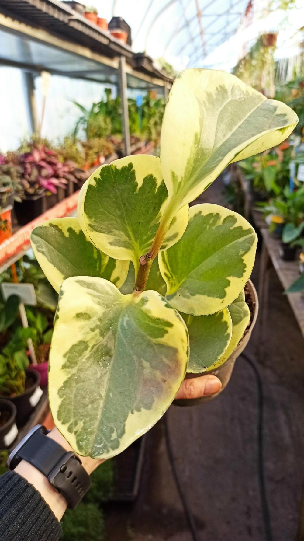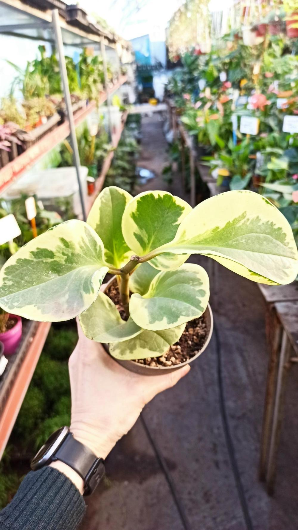 Пеперомия Туполистная Вариегатная (лат. Peperomia Obtusifolia Variegata) - одна из самых ярких среди туполистных пеперомий, выделяющаяся среди других невероятной окраской листовых пластин. Листья крупные, округло формы с пёстрой окраской. Растет максимум до 40см.