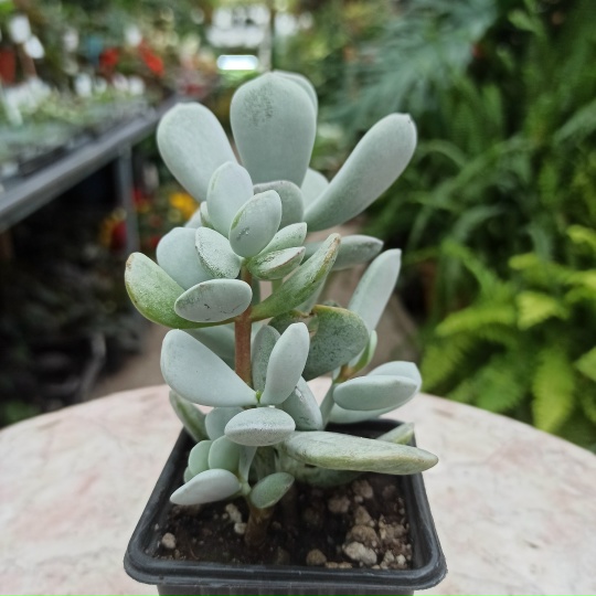 Котиледон округлый - доходит высотой практически до 90 см и имеет фигуру куста. У него вечнозеленые листки с красноватым налетом. У котиледона волнистого листки с белым налетом и с особенной по красоте волнистой каймой.