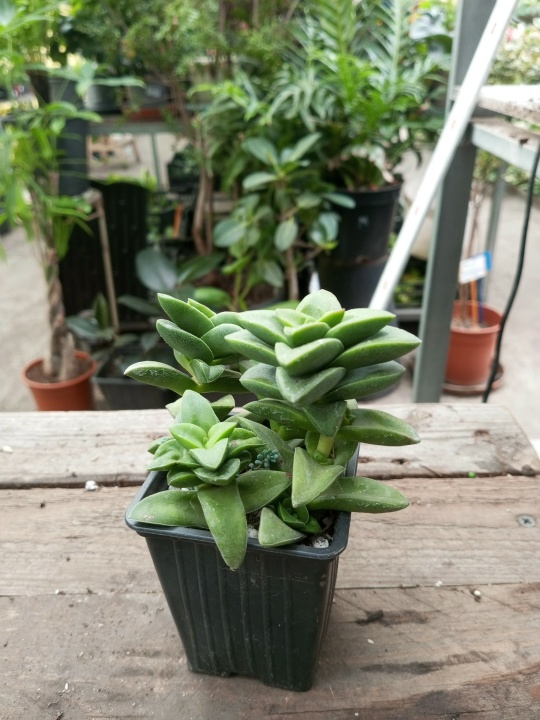 Крассула Спринг Тайм (Crassula Spring Time) — это очаровательный гибридный суккулент, отличающийся пышной, кустистой формой и нежными пастельными оттенками. Его многочисленные стебли густо покрыты мелкими мясистыми листьями, которые образуют плотные, объёмные куртины. Листья округлые или слегка вытянутые, с заострёнными кончиками, расположены супротивно, создавая эффект аккуратных ярусов.