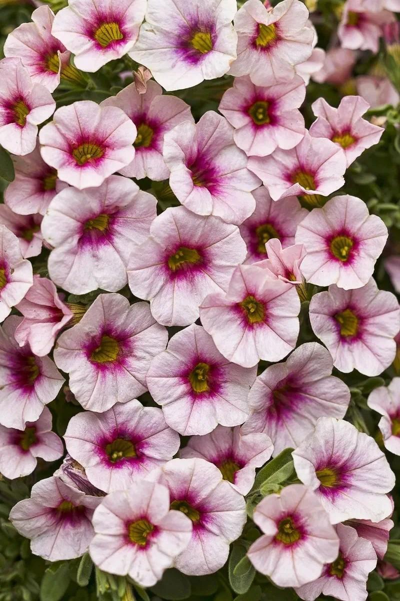 Калибрахоа Айконик Черри Блоссом, или Calibrahoa Eyeconic Cherry Blossom, представляет собой компактное и привлекательное растение, которое идеально подходит для украшения садов и террас. Эта разновидность калибрахоа относится к серии Айконик (Eyeconic) и отличается своей яркой окраской и обильным цветением. Высота куста достигает 20 см в стандартном состоянии, но может вырасти до 36 см при оптимальных условиях. Диаметр растения варьируется от 20 до 30 см, а в некоторых случаях может достигать 41 см.