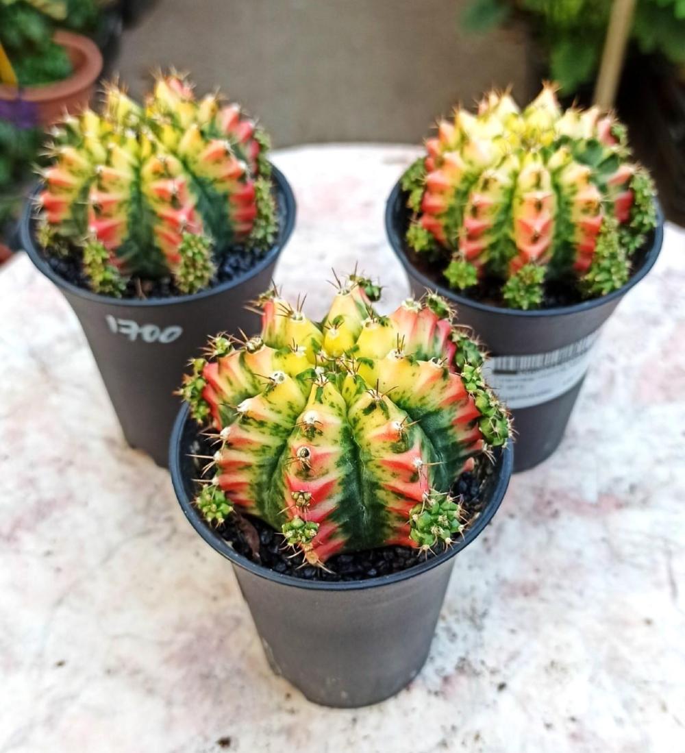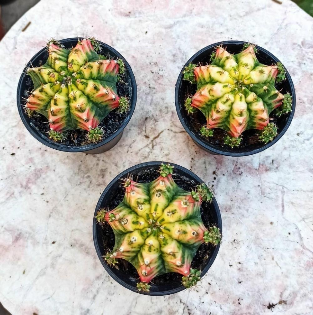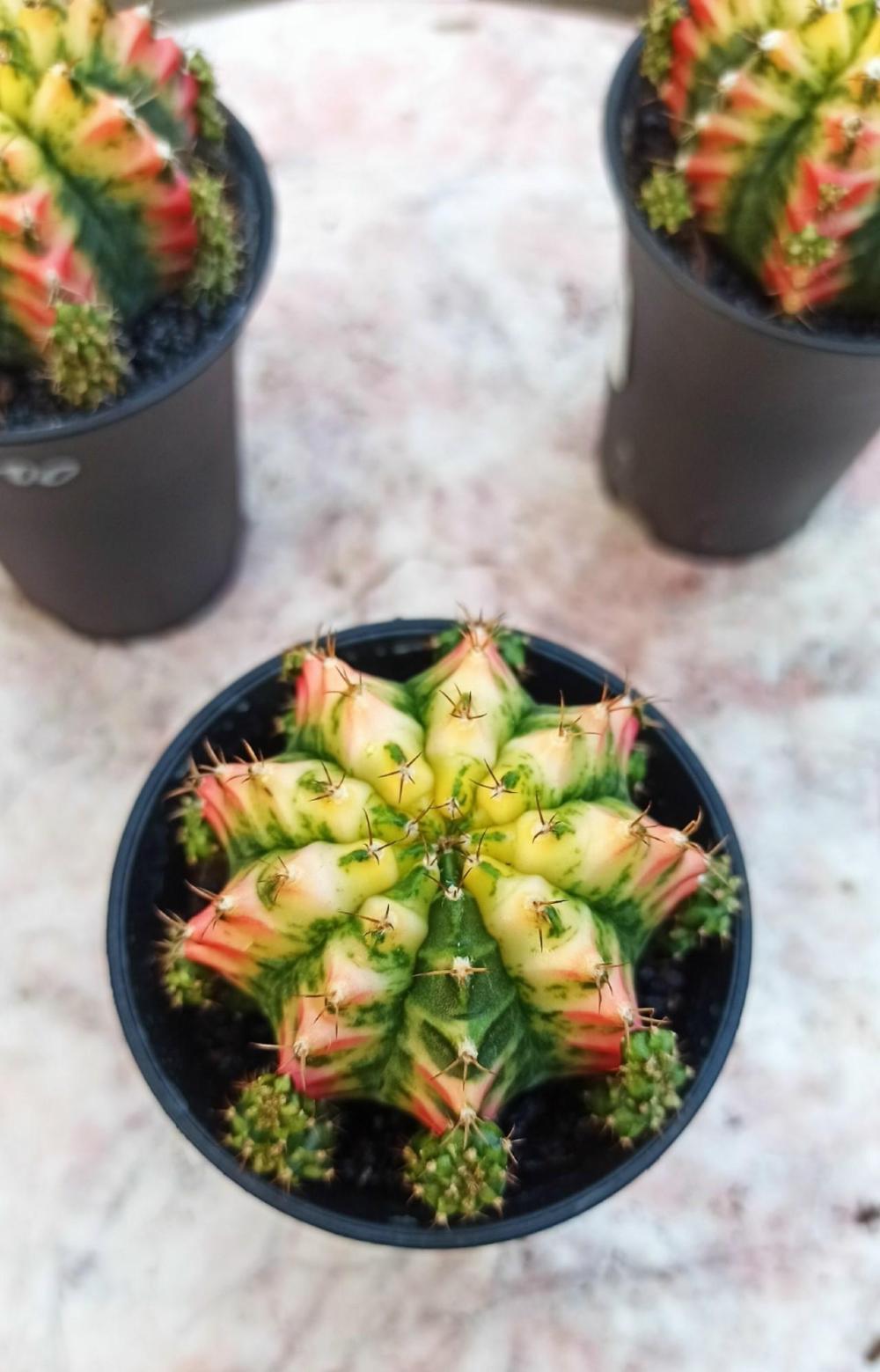 Гимнокалициум Михановича вариегата с детками по всему кактусу. Окрас природный, не крашенный